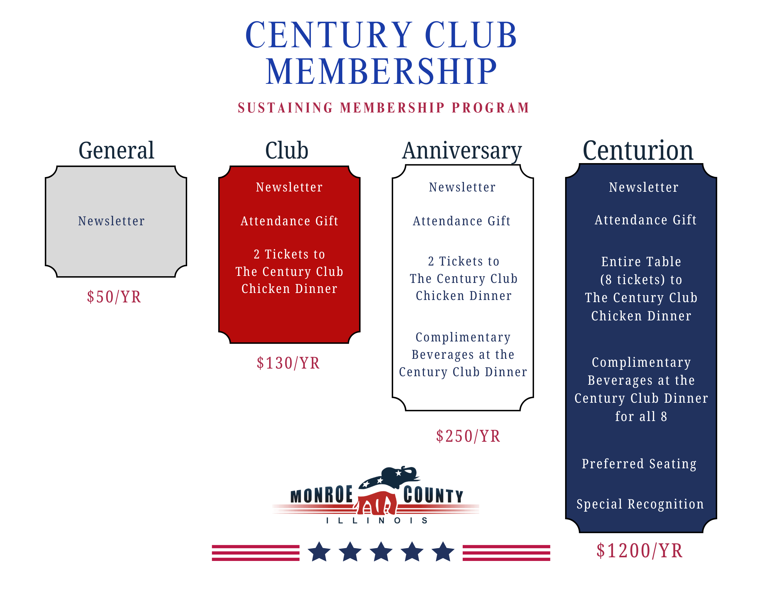 To continue the successes we have enjoyed in Monroe County, we are asking our conservative community to join our New Membership Program for the Monroe Republican Club. The money we raise, goes directly to funding our local party and supporting our excellent candidates. To keep up with the growing costs of sustaining the Monroe County Republicans, we have expanded our Century Club to include different levels of membership options.